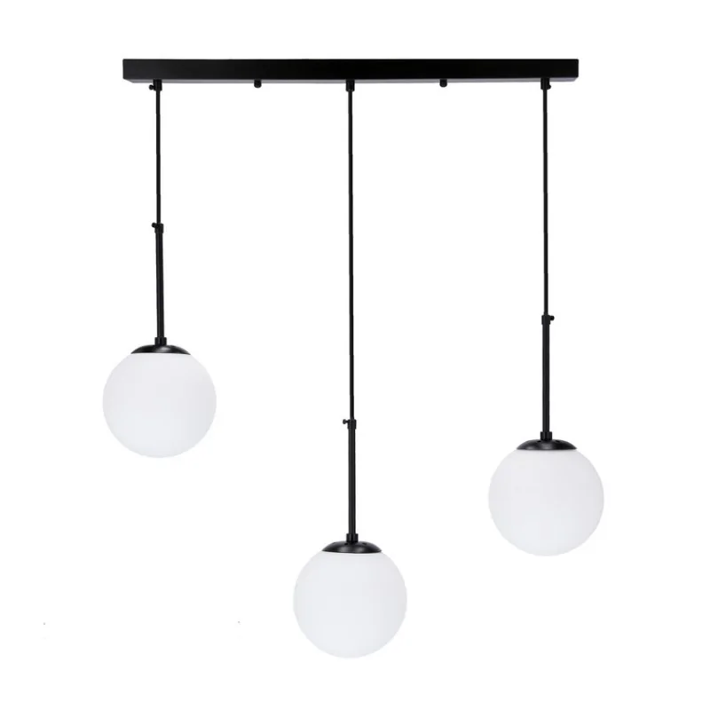 Lampa wisząca 33-09609 z kolekcji POMPEI zaprojektowana przez markę CANDELLUX, bez problemu dopasuje się niemal do każdego wnętrza. Czarna podstawa ze stali, zakończona jest trzeba szklanymi kulami, które maksymalnie rozproszą światło w pomieszczeniu. Możliwość regulacji długości lampy poprzez skrócenie przewodu daje duże możliwości zastosowania. Listwa sufitowa mierzy 70cm długości, natomiast wysokość to 100cm. W oświetleniu wiszącym zastosowano 3 oprawki na żarówki E27 - najczęściej wybierane i cenione przez Klientów z uwagi na szeroki wybór, w tym żarówek LED. W serii POMPEI dostępne są 3 modele lamp.