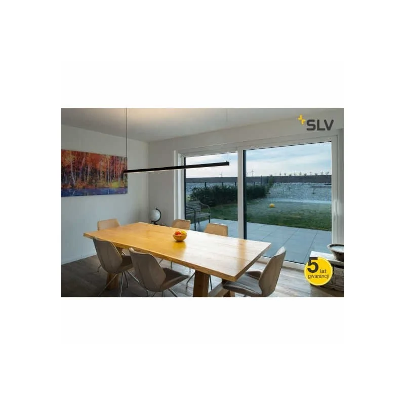 Wisząca lampa sufitowa AROSA marki SPOTLINE jest w kolorze czarnym, który z łatwością wkomponuje się w każdego rodzaju pomieszczenie. Prezentowana lampa doskonale spisze się w jadalni nad stołem. Oprawa świeci ciepłą białą barwą światła o temperaturze barwowej równej 3000K i strumieniu świetlnym 1800 lumenów. Przybliżony czas działania zintegrowanego źródła światła to około 40000h. Lampa jest o długości 2m i jest również dostępna w białym kolorze. 5-letnia gwarancja i wysoka jakość wykonania to zalety produktów firmy Spotline.