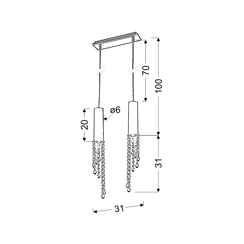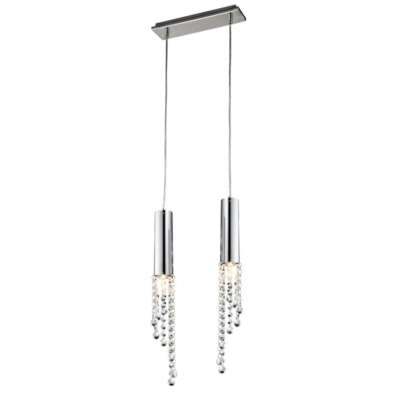 Lampa wisząca DUERO 32-25265 w ekskluzywnym wydaniu z kryształkami sprawdzi się zarówno we wnętrzach dużych, loftowych jak i z ograniczoną przestrzenią. A to za sprawą możliwość regulacji wysokość. Oświetlenie sufitowe przystosowane jest na dwie żarówki o gwincie GU10 oraz posiada wbudowany LED, który emituje ciepłą barwą światła i pobiera moc 3W. Całość wykonana jest z metalu w kolorze chromu. Zwisające kryształki po zaświeceniu pięknie rozpraszają światło w pomieszczeniu. Wymiary lampy wynoszą: wysokość - 100cm + dodatkowe 31cm stanowią kryształki. Do kompletu polecamy lampy z 1 lub 3 źródłami światła. Produkt objęty jest gwarancją producenta.