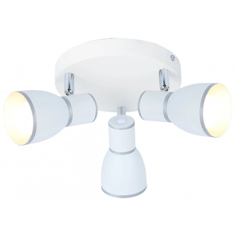 Funkcjonalna lampa sufitowa FIDO 98-63397, wykonana została w białym kolorze z ozdobnymi srebrnymi paskami, tworząc spójną całość. Oświetlenie dzięki uniwersalnej kolorystyce oraz możliwości zmiany kierunku świecenia, dzięki ruchomym kloszom dopasuje się zarówno do niskich jak i wysokich pomieszczeń. Trzy abażury posiadają miejsce na żarówkę o trzonku E14 do maksymalnej mocy 40W. Źródło światła nie jest dołączone do zestawu. Plafon posiada wymiary takie jak: wysokość - 16cm oraz szerokość - 34cm. Do kompletu możemy dobrać kinkiet, spiralę lub listę oświetleniową 2 i 3 punktową. Produkt objęty jest gwarancją producenta.