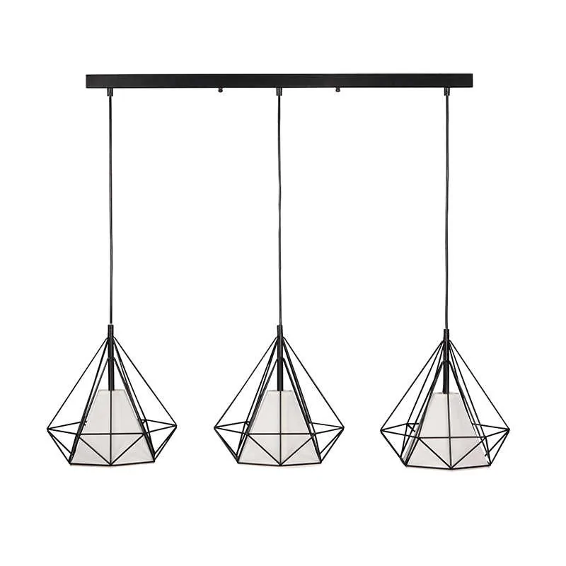 Minimalistyczna lampa wisząca sufitowa potrójna HIRA idealnie nada się do nowoczesnych wnętrz. Trzy klosze w geometrycznym kształcie dodają jej uroku. Brak źródła światła w zestawie sprawia, że możesz dopasować moc, barwę oraz natężenie światła do swoich potrzeb. W środku metalowego geometrycznego klosza umieszczony został drugi klosz w kolorze bialym, w którym mocowana jest żarówka z trzonkiem E27. W serii Hira dostępna jest również pojedyncza lampa sufitowa oraz kinkiet.