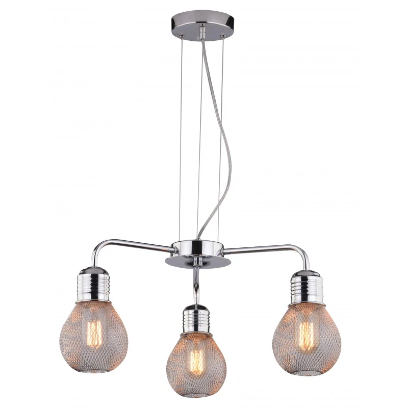 Lampa sufitowa GLIVA 33-58539 marki Candellux, całość utrzymana w nowoczesnym chromie sprawdzi się szczególnie w przestrzennych i nowoczesnych wnętrzach. Oryginalne trzy druciane klosze pięknie rozproszą światło we wnętrzu a metalowe zawiesie pozwala na regulację wysokości poprzez samodzielne skórnie przewodów. Lampa wisząca przystosowana jest na żarówki E27, do mocy max 60W (brak w zestawie). W tej serii jest również lampa 5 -punktowa oraz 1-punktowa i kinkiet. Produkt objęty jest gwarancją producenta.