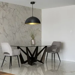 Podążając za modą, w przypadku lampy wiszącej MLP7973 BETA producent EKO-LIGHT, oferuje idealne dopełnienie zarówno nowoczesnego jak i klasycznego wnętrza. Metalowy klosz, który charakteryzuje bardzo minimalistyczny design będzie też doskonałym uzupełnieniem loftowych aranżacji, komponowanych na wzór przemysłowych budynków. Średnica klosza wynosi 45cm, natomiast wysokość 90cm, którą możemy skrócić do 50cm, dzięki czemu odpowiednio dopasujemy oprawę do otoczenia. Oświetlenie sufitowe przystosowane jest na żarówkę o trzonku E27 do max mocy 60W, brak źródła światła w zestawie. Ten model dostępny jest także w kolorze białym.