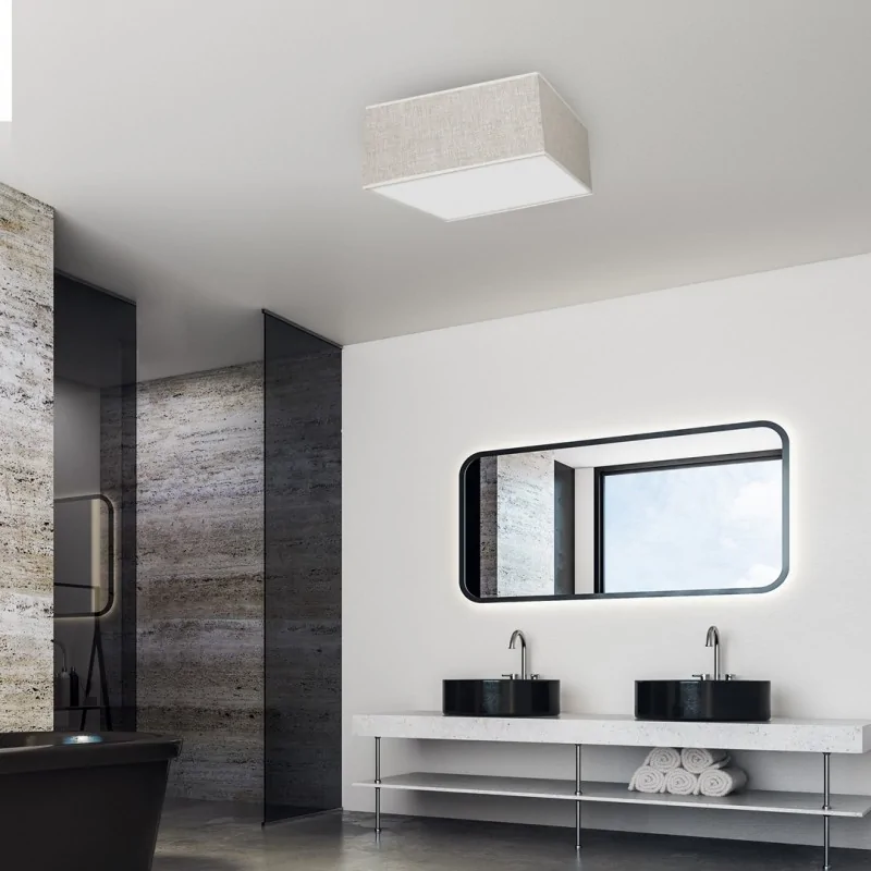 Lampa sufitowa MLP7496 LINO zaprojektowana przez polską markę EKO-LIGHT, do wykonania jej kloszu użyto wysokiej jakości lnu. Jego faktura jest widoczna, a tkanina nie jest zbita i przepuszcza światło, dzięki temu oświetlenie w danym pomieszczeniu jest bardzo delikatne i subtelne. Wysokość mierzy 13cm, a szerokość boków to 50cm, spore wymiary pozwolą na oświetlenie zarówno niskich jak i przestrzennych wnętrz. W oświetleniu należy zamontować 3 żarówki o gwincie E27 - najlepiej wybrać energooszczędne żarówki LED. Polecamy zapoznać się z całą serią LINO, w której dostępnych jest 10 modeli lamp.