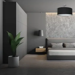 Lampa wisząca CASINO ML6379, jest prostą lecz szykowną propozycją oświetleniową polskiego producenta EKO-LIGHT, która dzięki uniwersalnej kolorystyce dopasuje się do każdego stylu we wnętrzu. Chromowa podstawa wykonana z metalu, zakończona jest czarnym tkaninowym kloszem, który dla bezpieczeństwa został usztywniony PCV. Wysokość oprawy to 35cm, natomiast średnica abażuru wynosi 50cm. Oświetlenie przystosowane jest na jedną żarówkę o gwincie E27 do max mocy 60W. Polecamy wybrać energooszczędną żarówkę LED. Aby stworzyć nowoczesny klimat w pomieszczeniu możemy zamontować inne lampy z serii CASINO - do wyboru mamy 12 różnych modeli.