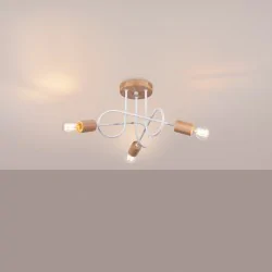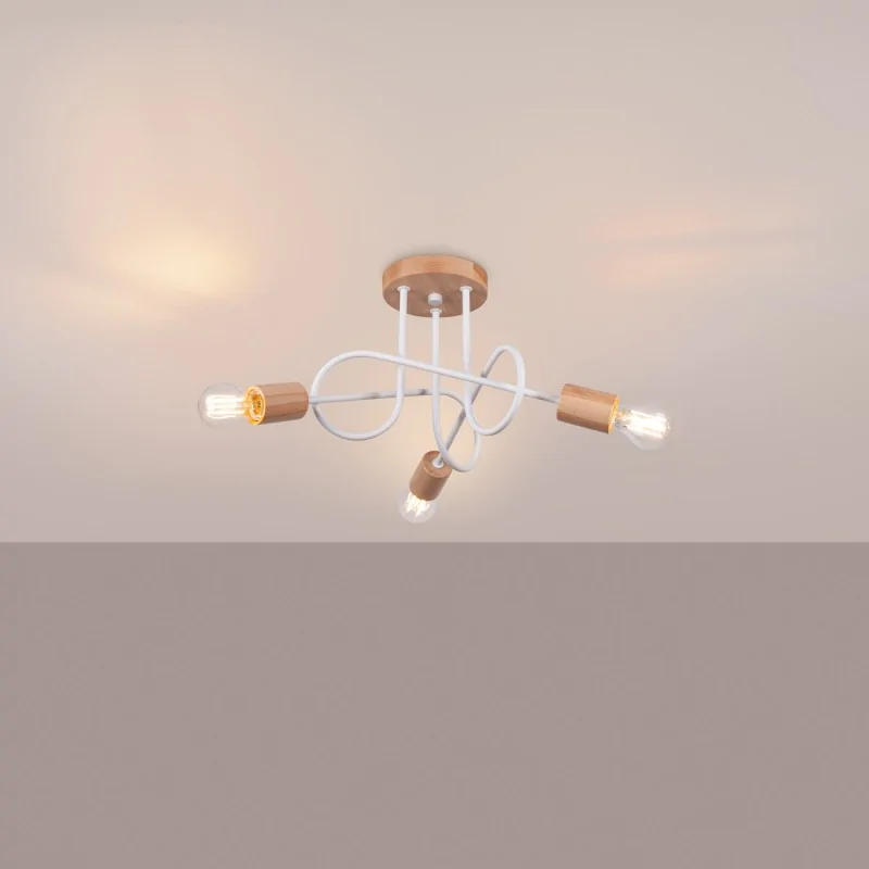Lampa sufitowa biała z dodatkiem drewna supeł Żyrandol na 3 żarówki EMBER SL.1474 SOLLUX