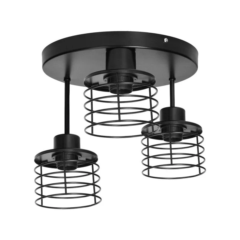 Trójpunktowa lampa sufitowa ISLA marki ORNO, złożona z trzech kloszy osadzonych na okrągłej rozecie, na różnych poziomach. Głowice są zamocowane na stałe i nie mają możliwości regulowania kierunku świecenia. Oświetlenie sufitowe, nadaje się do domowych lub biurowych pomieszczeń. Koszyki chroniące żarówkę złożone są z czterech metalowych obręczy, o takiej samej średnicy, całość stabilizują symetrycznie rozmieszczone pręty. Do lampy polecamy wybrać żarówkę filamentową (o gwincie E27), to połączenie prezentuje się bardzo ciekawie, zwłaszcza, jeżeli budujemy atmosferę pomieszczenia światłem właśnie. Lampa przystosowana jest do montażu sufitowego oraz ściennego. Sprawdź też inne lampy z serii ISLA - kinkiety, lampy dwu- i trójpunktowe, z rozetą lub montowane na listwie.