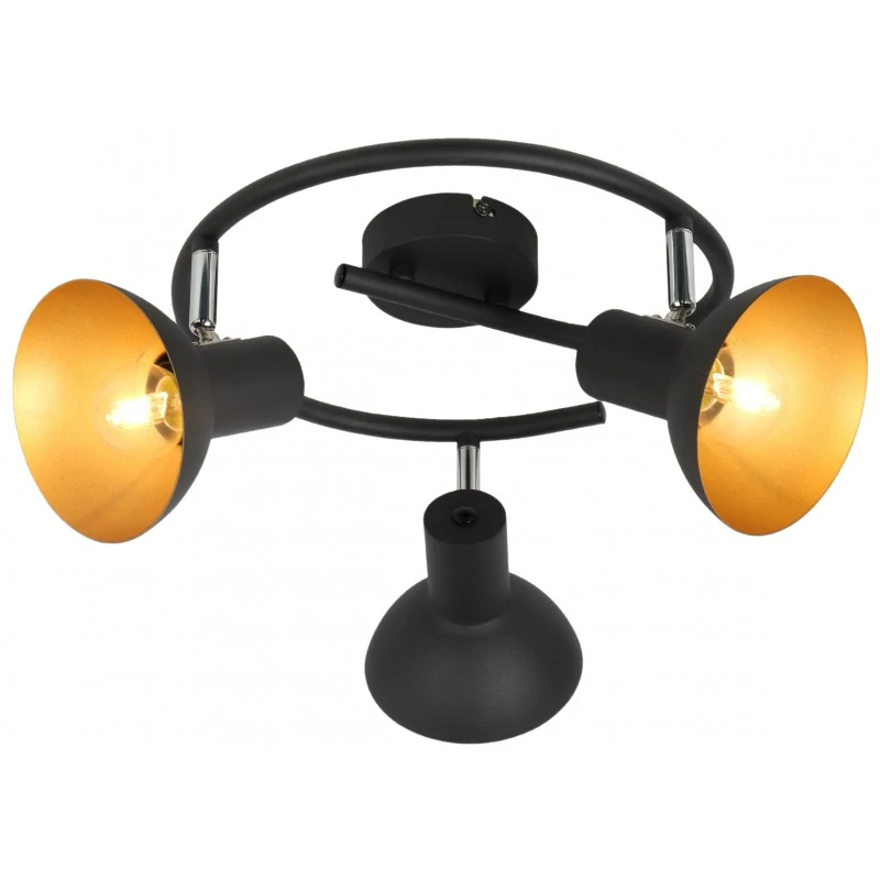 Lampa sufitowa potrójna DISO firmy Candellux przystosowana jest do trzech źródeł światła o maksymalnej mocy pojedynczego źródła do 40W, o tradycyjnym trzonku E27. Produkt jest w kolorze czarnym, który został rozświetlony złotym wnętrzem, co sprawia, że jest jeszcze bardziej elegancka. Lampa sufitowa posiada możliwość regulacji klosza oraz montażu lampy zarówno w poziomie, jak i pionie. Klosz i podstawa lampy została wykonana z wysokiej jakości metalowego materiału, co gwarantuje Ci długą żywotność produktu.