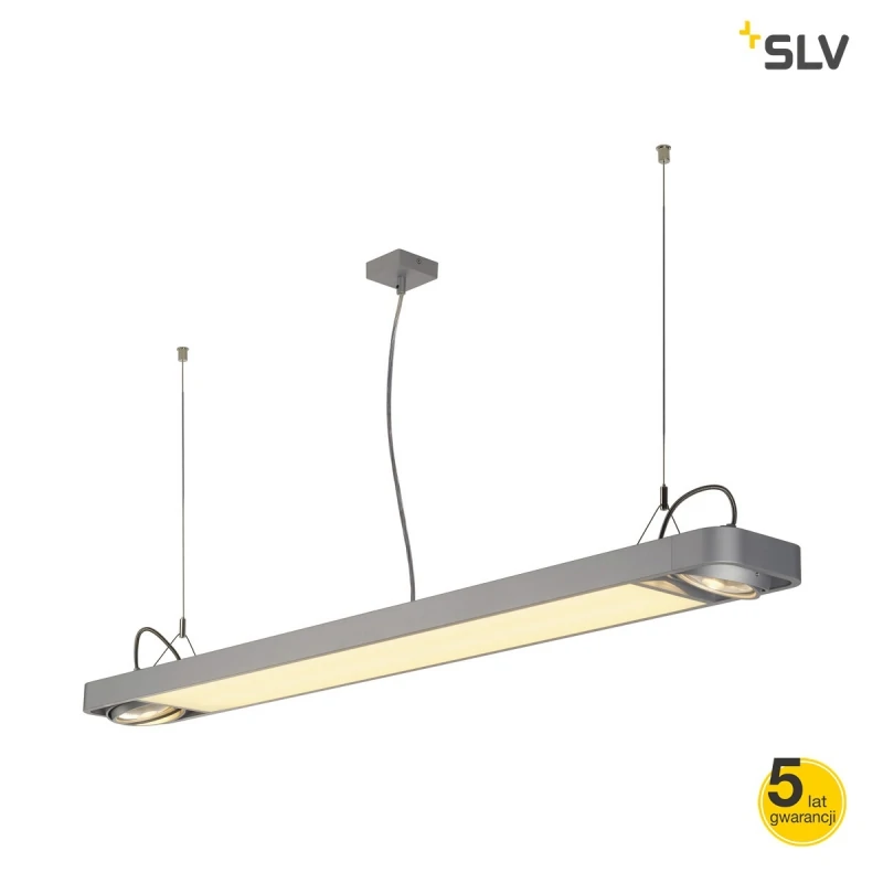 Lampa sufitowa led AIXLIGHT R2 OFFICE LED długi wisząca srebrnoszara LED +2xQPAR111 max. 75W, 153cm SLV