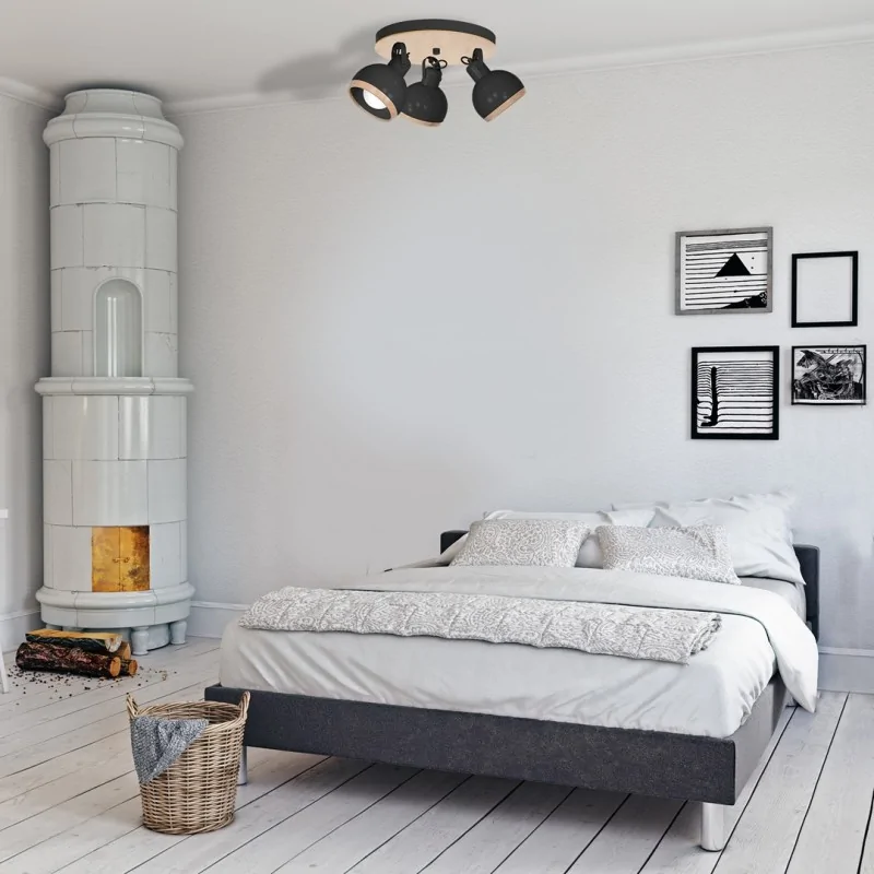 Szeroka kolekcja lamp Oval to nowoczesne oświetlenie łączące uniwersalne kolory z elementami drewna. W skład rodziny wchodzą niewielki kinkiet i lampa stojąca, a także lampy sufitowe w różnej konfiguracji. Elementem charakterystycznym całej kolekcji jest nowoczesny, kulisty kształt. Lampy oprócz metalowego wykończenia, mają stylowe detale z drewna - pierścienie na zakończeniu kloszy oraz na ramionach i podstawie poszczególnych modeli. Wstawki z drewna ocieplają całą stylizację. Czarna oprawa sufitowa OVALE przeznaczona jest na 3 źródła światła z gwintem E27 - brak w zestawie-o mocy do 40W każda. Wymiary lampy to 350x350x220 mm. Produkt objęty jest gwarancją producenta.