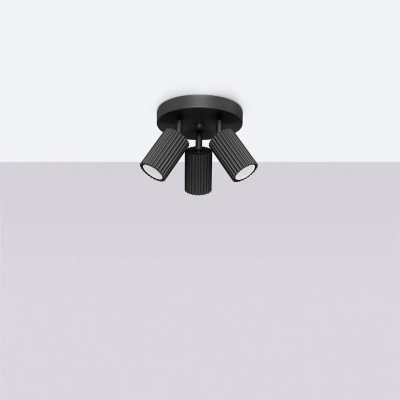 Lampa sufitowa Plafon potrójny czarny 3 karbowane klosze KARBON SL.1582 SOLLUX