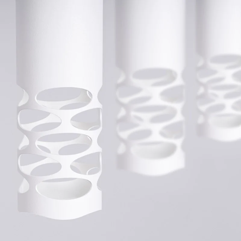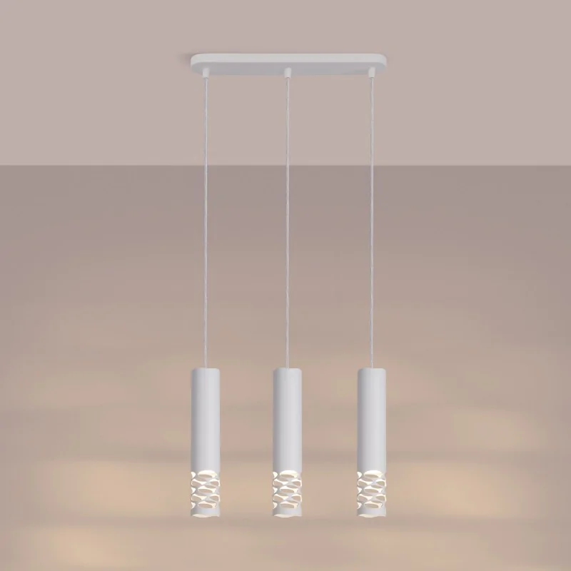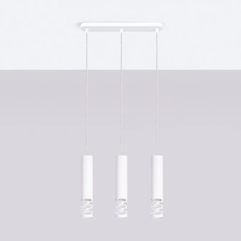 Lampa sufitowa potrójna zwisające tuby na listwie