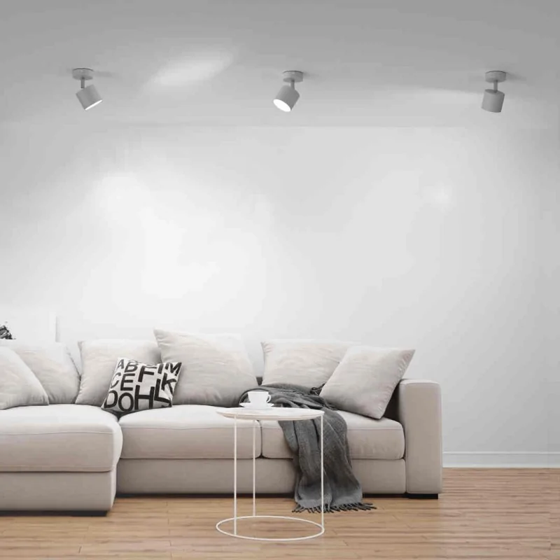 Minimalistyczna lampa sufitowa MLP7594 DIXIE producenta EKO-LIGHT, w postaci małego reflektora, ze względu na niewielki rozmiar, najlepiej będzie komponowała się z kilkoma zestawionymi sztukami. Całość wykonana jest z metalu w delikatnym białym kolorze. Funkcjonalnym elementem jest ruchomy klosz, który możemy ustawić w dowolnym kierunku, umożliwia to dokładne podświetlenie np. obrazu, rzeźby bądź innych rzeczy. Oświetlenie sufitowe posiada oprawkę na żarówkę o trzonku Gx53 (brak w zestawie). Oprawa mierzy 14cm wysokości oraz 8cm szerokości. Polecamy zapoznać się z całą serią DIXIE w której dostępnych jest aż 40 modeli w 4 różnych kolorach.