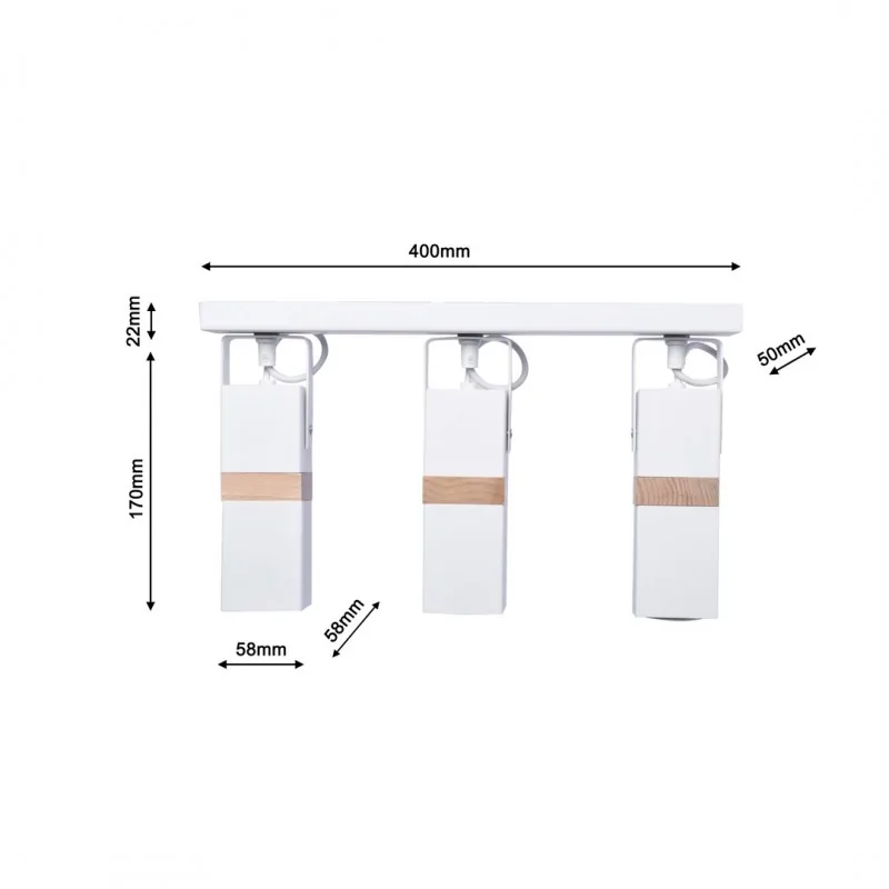 Lampa sufitowa VIDAR to doskonałe oświetlenie do salonu, które nada eleganckiego charakteru każdemu pomieszczeniu. Metalowa obudowa odporna jest na zarysowania, co gwarantuje długą żywotność produktu. Lampa sufitowa potrójna przystosowana jest do żarówek z trzonkiem GU10- brak w zestawie. Produkt wyposażony został w trzy białe klosze w kształcie prostopadłościanu, które ozdobione są drewnianym paskiem. Brak źródła światła w zestawie pozwala na samodzielne dopasowanie żarówek do własnych potrzeb.