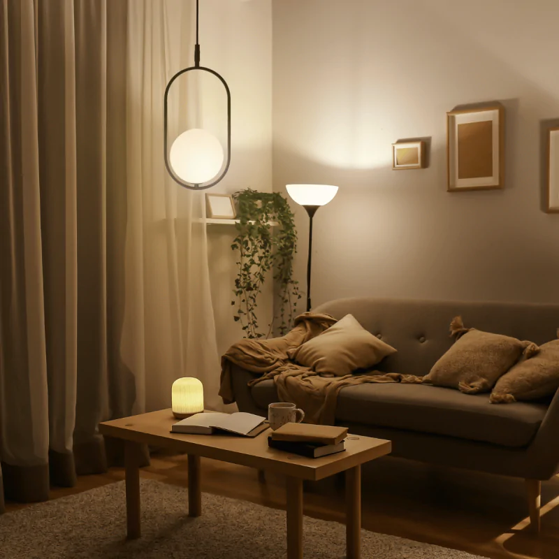 - Miękkie, przyjemne światło: Mleczna kula delikatnie rozprasza światło, tworząc nastrojową i komfortową atmosferę.