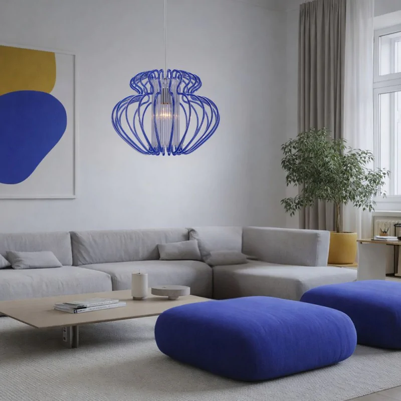 Produkt nowoczesny dla odważnych, miły dla oka bardzo ciekawy wzrór. Wykonany z plastiku w kolorze czerwonym, niebieskim i białym. Klienci często wybierają ja do odważnych salonów oraz gabinetów.