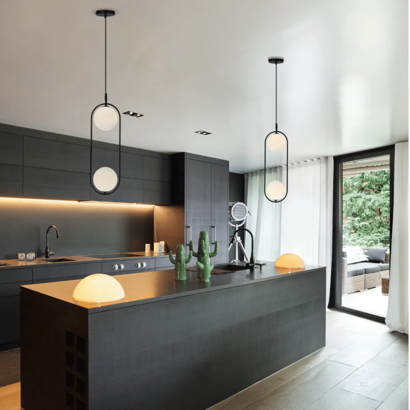 - Subtelne oświetlenie: Dwa mleczne, szklane klosze delikatnie rozpraszają światło, tworząc przytulną atmosferę.