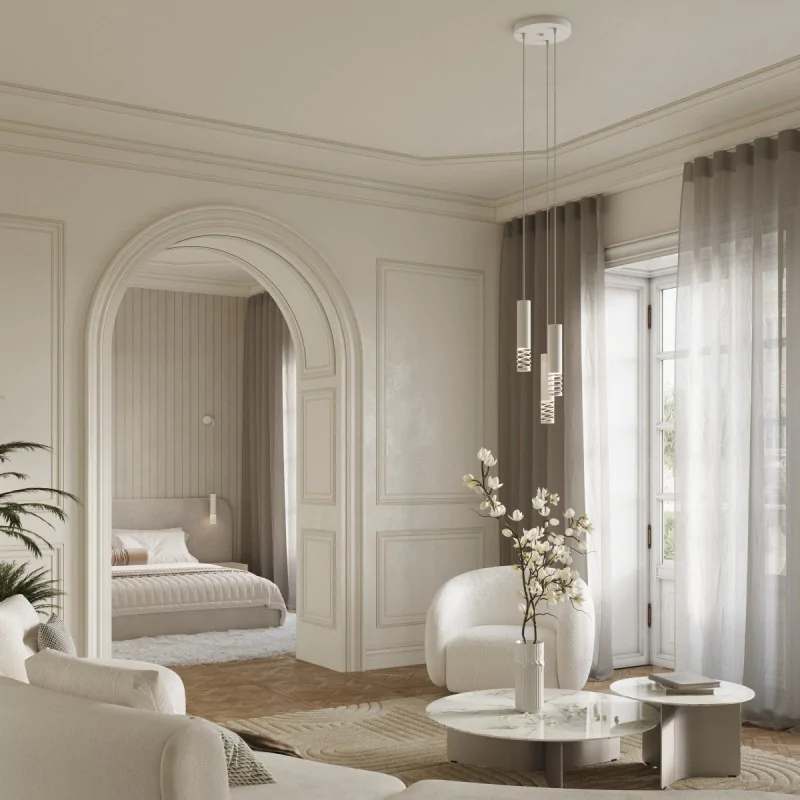 LAMI dostępna jest w wersji wiszącej – pojedynczej, podwójnej lub potrójnej – a także jako kinkiet na wysięgniku. Taka różnorodność sprawia, że z łatwością dopasujesz ją do każdej przestrzeni: nad wyspę kuchenną, do salonu, nad stół, a nawet przy łóżku jako oryginalne światło boczne.