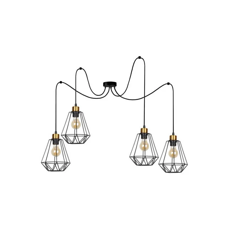 Lampa sufitowa wisząca z czterema loftowymi kloszami 4xE27 czarny/złoty PRIMO P 34-00309 Candellux