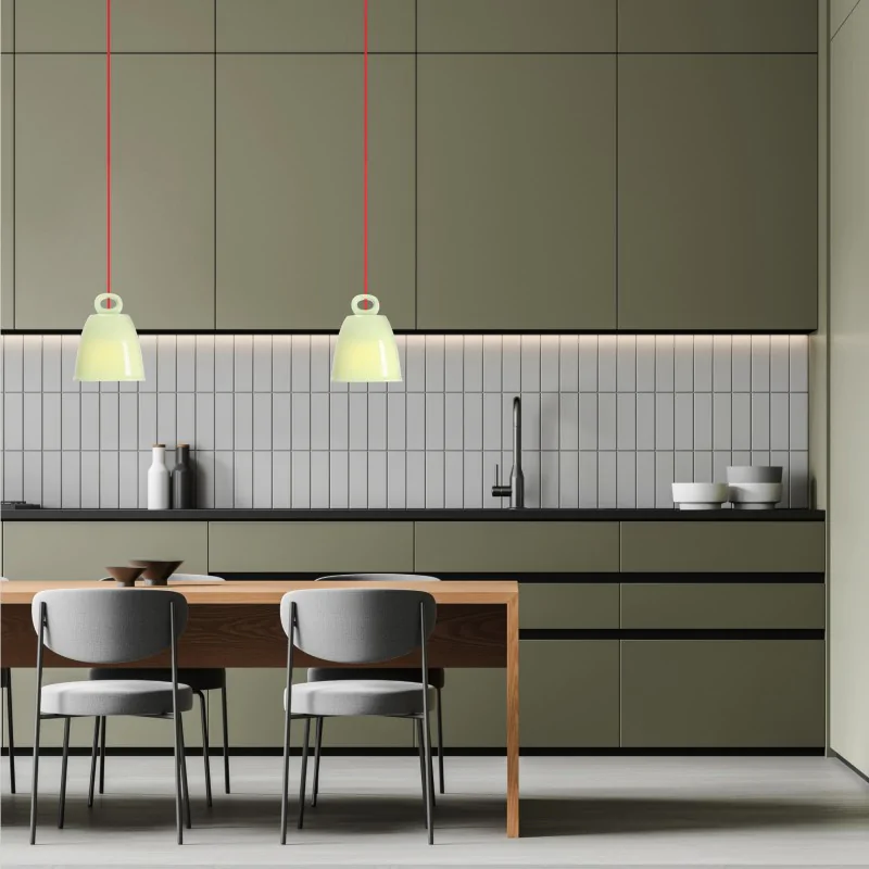 Ta stylowa lampa wisząca z ceramiczną podstawą w odcieniu zieleni wprowadzi do wnętrza świeżość i elegancki akcent. Jej smukła forma oraz lekkość projektu sprawiają, że doskonale pasuje do nowoczesnych i minimalistycznych aranżacji. Dzięki oprawce E27 można łatwo dobrać żarówkę, tworząc oświetlenie dopasowane do nastroju i charakteru pomieszczenia. Idealna jako subtelny element dekoracyjny nad stołem, biurkiem lub w strefie wypoczynkowej.