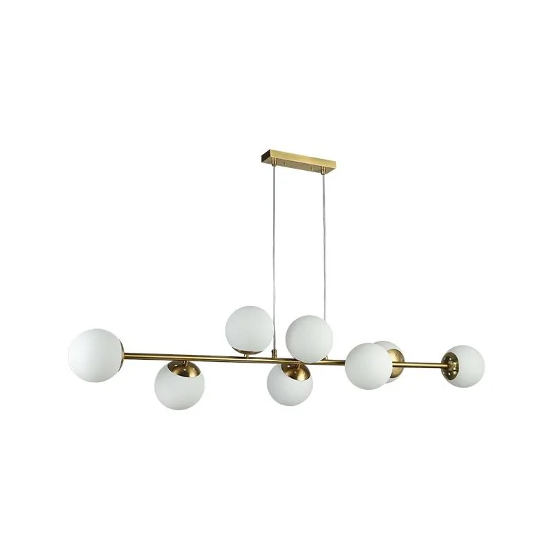 Lampa sufitowa Bali to elegancka i nowoczesna propozycja oświetleniowa od marki LVT, która idealnie wpasuje się w różnorodne aranżacje wnętrz. Jej stylowy design i wysokiej jakości wykonanie sprawiają, że jest nie tylko funkcjonalnym źródłem światła, ale także wyjątkowym elementem dekoracyjnym, który doda uroku każdemu pomieszczeniu. Wisząca lampa sufitowa z ośmioma kloszami w kształcie kuli doskonale nadaje się do oświetlenia salonu, jadalni, sypialni czy kuchni. Produkt znajdzie zastosowanie również w restauracji czy hotelu. Dzięki swojemu unikalnemu stylowi, złota lampa wisząca wprowadzi do każdego wnętrza wyjątkową atmosferę. Brak źródła światła w zestawie pozwala na indywidualne dopasowanie mocy, barwy i natężenia światła do własnych potrzeb, zgodnie z zaleceniami producenta. Dedykowanym źródłem światła są żarówki z gwintem E27 nieprzekraczające mocy 35W (8x35W).