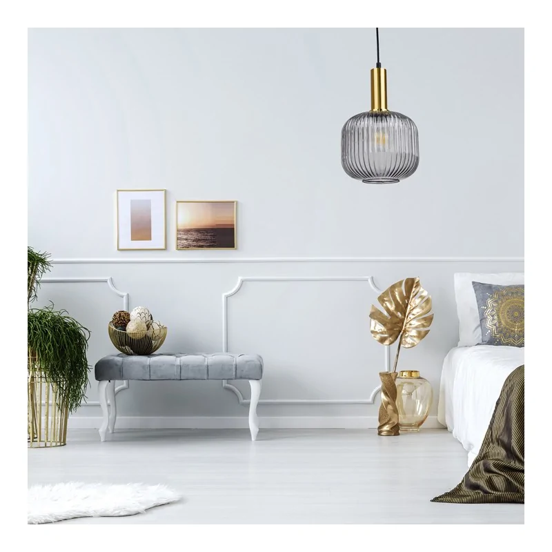 Ozdobna wisząca lampa sufitowa serii Il Mio marki POLUX to klasyczne oświetlenie, które nada się do każdej aranżacji. Przydymiony klosz i złote dodatki świetnie spiszą się w salonie, sypialni, a także w przedpokoju czy jadalni. Dodatkowo możesz samodzielnie dopasować moc, barwę i natężenie światła żarówki do własnych potrzeb oraz danego pomieszczenia. Lampa sufitowa przeznaczona jest do współpracy z żarówkami z tradycyjnym trzonkiem E27 o maksymalnej mocy led do 20W- brak w zestawie. Wysoka jakość wykonania gwarantuje trwałość przez lata. Wymiary produktu to 205 x max 1000 mm