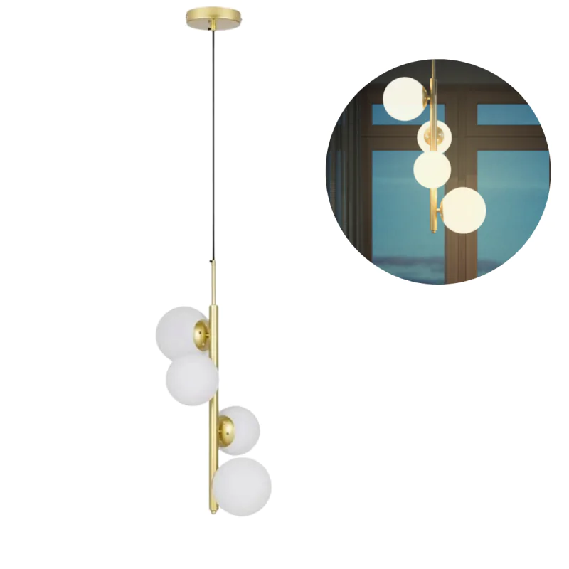 Lampa sufitowa wisząca Żyrandol Złoty 4 kuliste klosze CORDEL 34-01559 Candellux