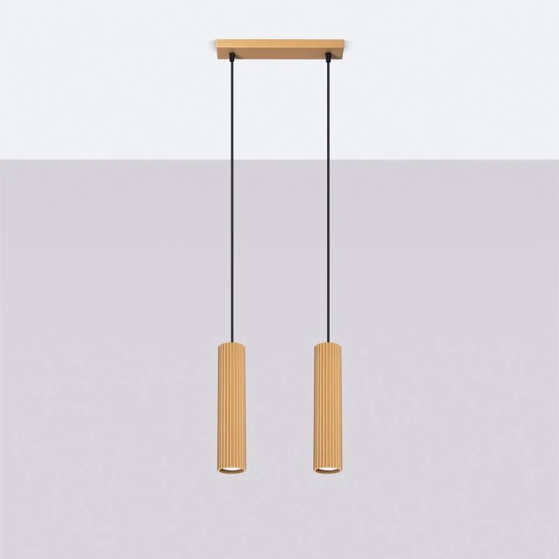 Lampa Sufitowa Żyrandol dwie karbowane tuby GU10 Złota KARBON SL.1555 SOLLUX