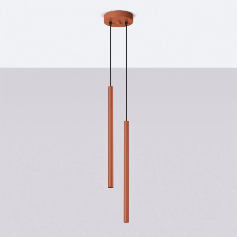 Lampa wisząca 2 cienkie tuby PASTELO 2 ochra czerwona Sollux SL.1525