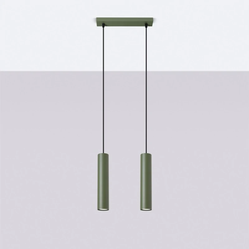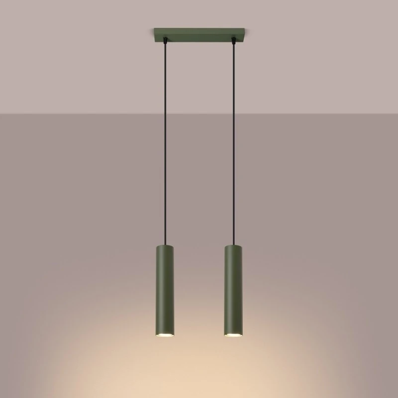 Lampa wisząca 2 sufitowe tuby LAGOS 2 zielona oliwka Sollux SL.1485