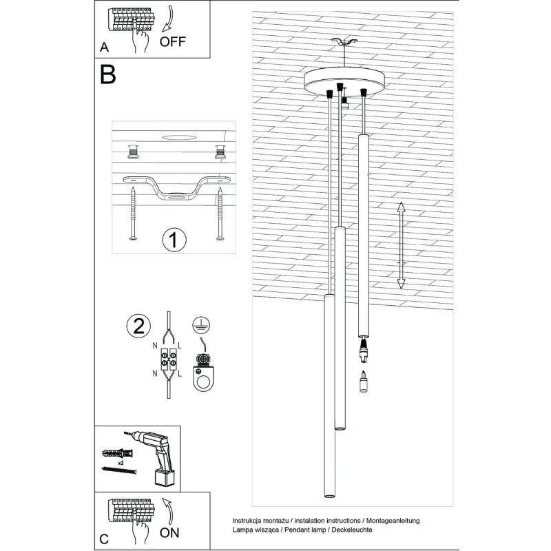 Lampa wisząca biała 3 zwisające tuby 3XGu10 LAGOS 3P SL.1078 SOLLUX