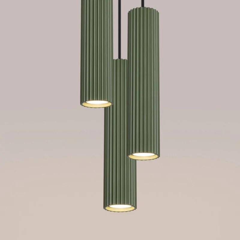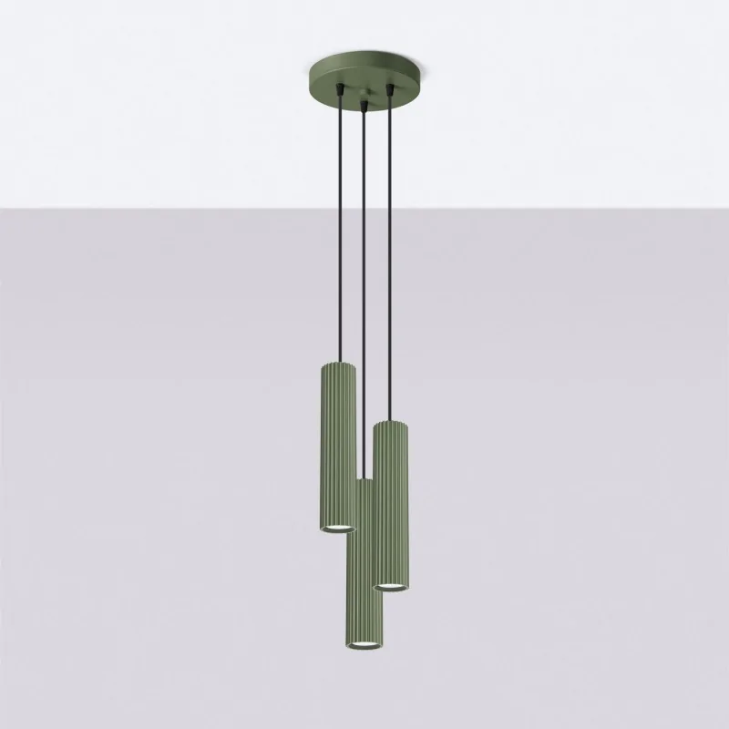 Lampa wisząca 3 tuby KARBON 3P zielona oliwka Sollux SL.1614