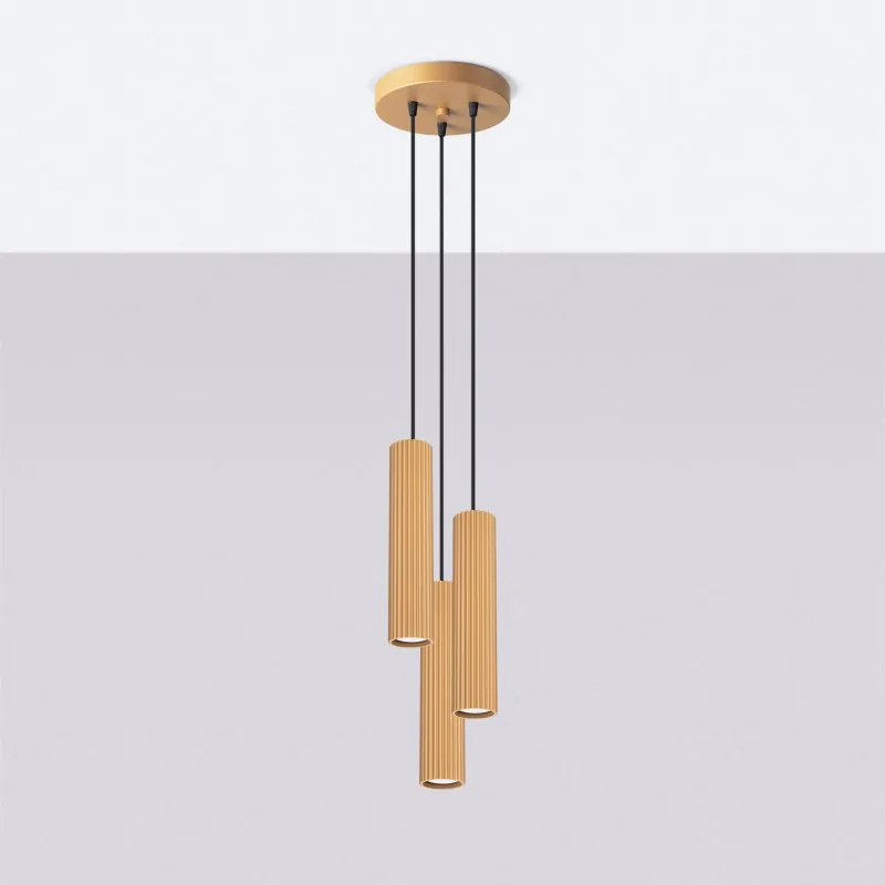 Lampa wisząca 3 tuby karbowane KARBON 3P złoty Sollux SL.1557