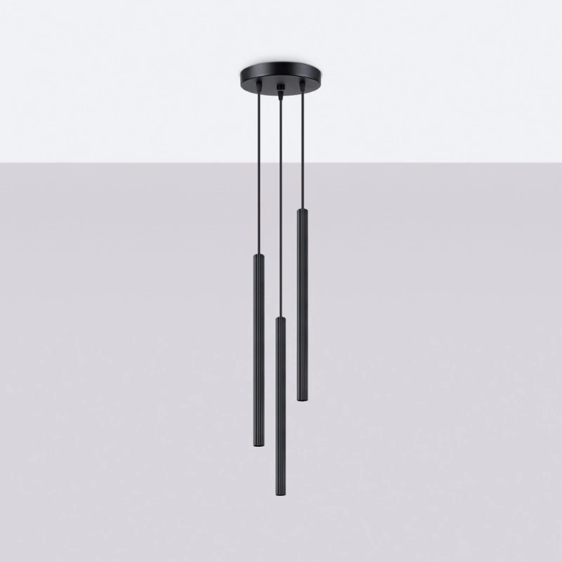 Lampa wisząca 3 długie tuby czarne falowane ARCHE 3P Sollux SL.1341