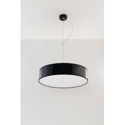 Czarna lampa wisząca Arena marki Sollux lighting to subtelne, eleganckie i nowoczesne oświetlenie naszego wnętrza. Lampa sufitowa dostępna jest w trzech wersjach kolorystycznych. Oświetlenie, które pięknie wyglądać będzie w każdym wybranym przez nas pomieszczeniu. Dzięki wymiennym źródłom światła o gwincie E27 dobierzemy moc i barwę światła odpowiednią do naszych oczekiwań. Pamiętajmy, że żarówki nie zostały dołączone do zestawu- do tego modelu wchodzą 3 żarówki E27 max 60W każda. Oświetlenie sufitowe jest łatwe w utrzymaniu czystości, bo wystarczy przetrzeć go szmatką. Polski produkt objęty 5-letnią gwarancją producenta.
