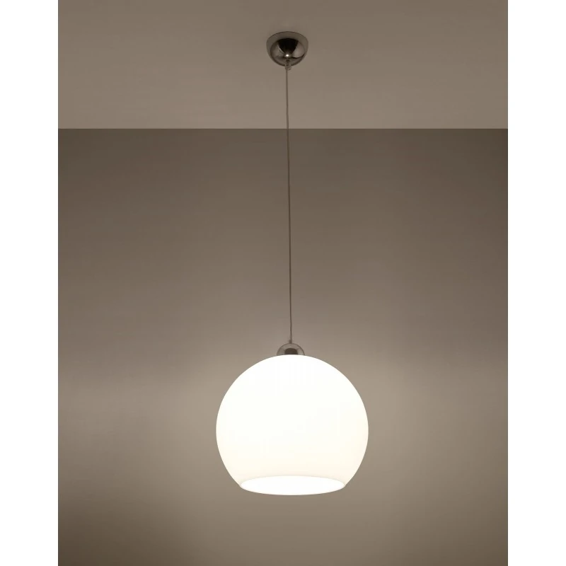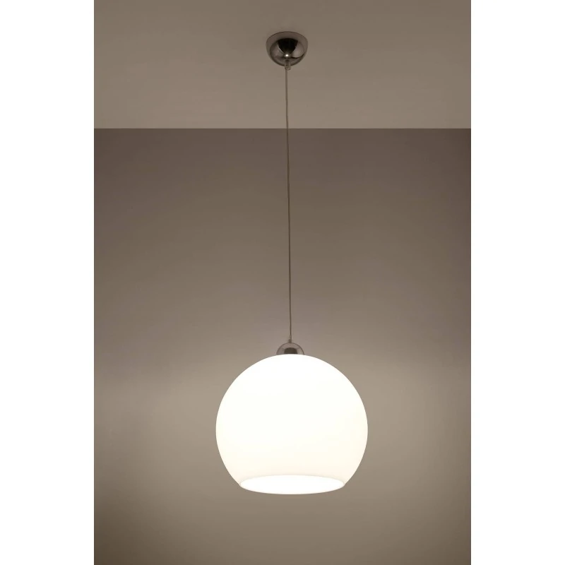 Lampa wisząca Ball marki Sollux lighting to cudowny i oryginalny dodatek w naszym wnętrzu. Biała szklana kula oświetlenia sufitowego pięknie zabarwi światło tworząc delikatną poświatę. Dzięki wymiennym źródłom światła o gwincie E27 będziemy mogli dobrać moc i barwę światła. Żarówka nie jest dołaczona do zestawu. Utrzymanie w czystości lampy wiszacej jest proste, wystarczy ją przetrzeć ściereczką. Polski produkt objęty 5-letnią gwarancją producenta.