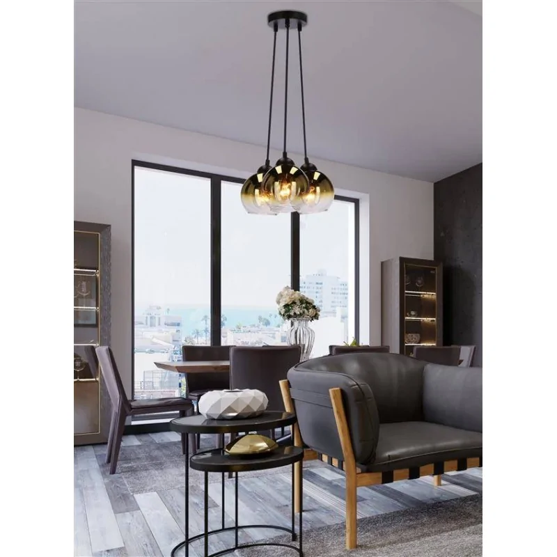 Lampa wisząca czarna 3 szklane kule 3xE27 60W NUBIA 33-16416 CANDELLUX