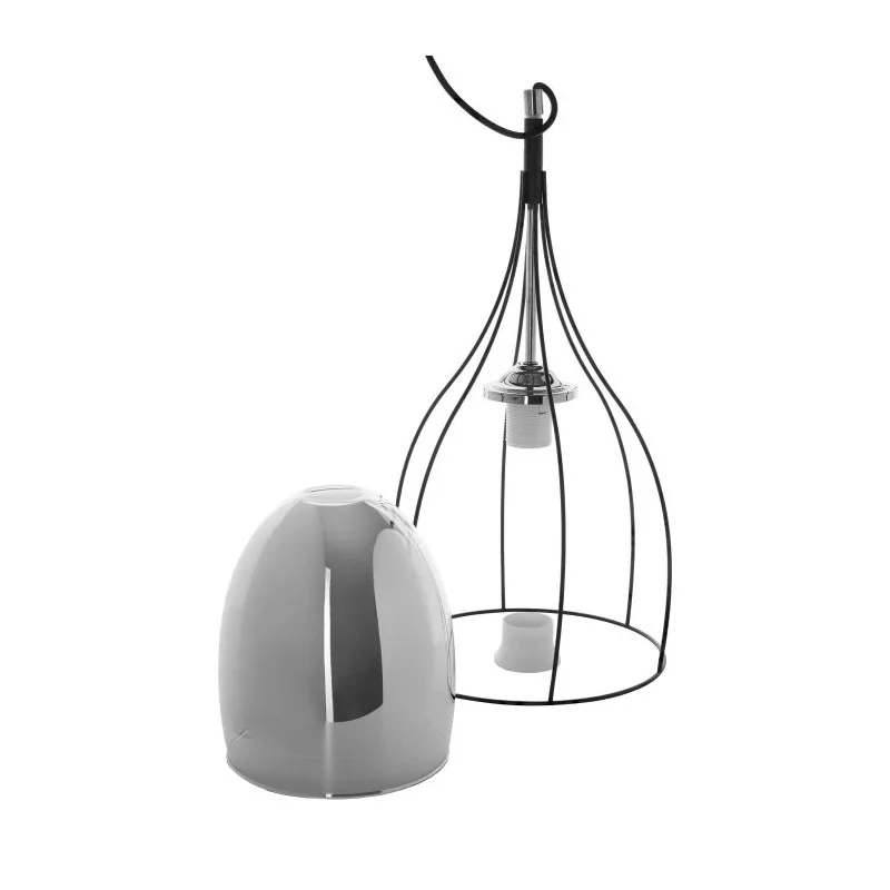 Czarna lampa wisząca ADELE, wykonana w industrialnym stylu przez markę ORNO. Lustrzany klosz w połączeniu z metalowym koszykiem, przyjemnie odbija światło we wnętrzu. W oświetleniu sufitowym ADELE należy zamontować tradycyjną żarówkę gwincie E27 do max mocy 60W (brak w zestawie). Oprawa w kolorze czarno - chromowym dopasuje się zarówno do nowoczesnych wnętrz jak i tych klasycznych. Lampa mierzy 85cm wysokości, natomiast średnica klosza wynosi 23cm. Produkt został wykonany w Polsce.