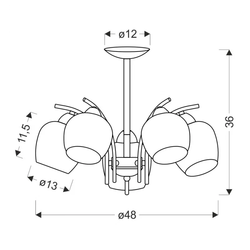 Materiał wykonania: podstawa stalowa, klosz szklany. Kolor podstawy: czarny. Wysokość: 36. Szerokość: 48. Głębokość: 48. Wymiary (wys. x szer. x gł.): 36x48x48. Waga netto: 1,71. Rodzaj trzonka: E27.