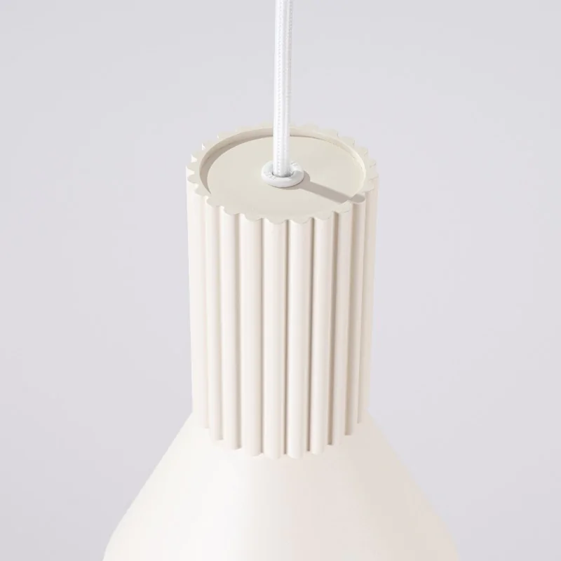Lampa ESTRIA dostępna jest w dwóch wersjach: wisząca 1 i 3, które różnią się rozmiarem, ale wszystkie charakteryzują się tym samym wyjątkowym designem i funkcjonalnością. Kolorystyka lampy łączy elegancką biel, beż oraz ultramarynę, które doskonale wpisują się w każde wnętrze, tworząc spójną aranżację.