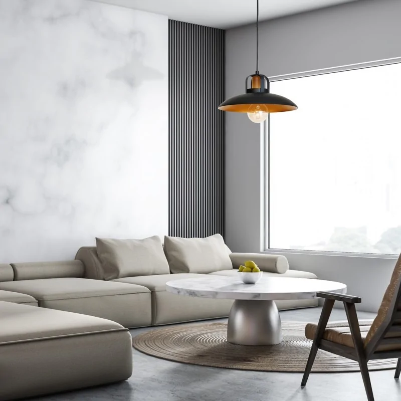 Lampa wisząca MLP3682 FELIX marki EKO-LIGHT, została wykonana z metalu i wykończona w ciekawej i atrakcyjnej kolorystyce - czarnym, matowym z wnętrzem klosza w kolorze starego złota. Doskonale podkreśli pomieszczenia zaprojektowanych w stylu industrialnym i skandynawskim. Ze względu na odsłonięte źródło światła, świetnie będzie prezentowała się dekoracyjna żarówka w stylu Vintage - koniecznie o trzonku E27 do max mocy 60W. Oświetlenie możemy odpowiedni dopasować do otoczenia, a to dzięki regulowanej wysokości od 50 do 90 cm, poprzez skrócenie przewodów, natomiast średnica klosza wynosi 30cm. Lampa dostępna jest o różnych wymiarach.