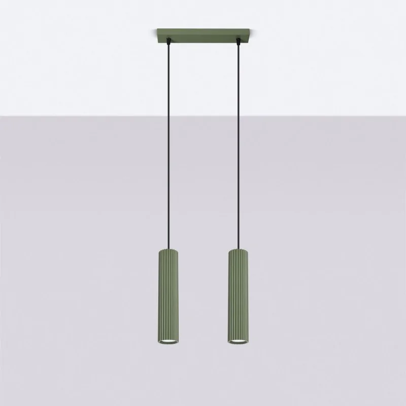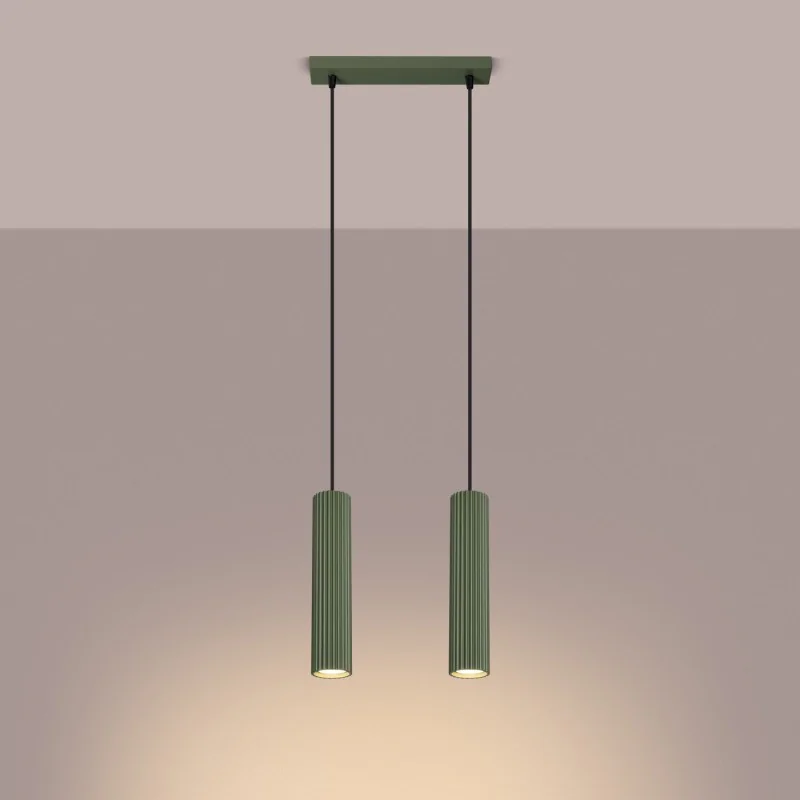 Lampa wisząca KARBON 2 zielona oliwka Sollux SL.1612