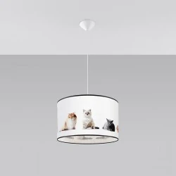 Lampa wisząca do pokoju dziecięcego KOTY jest dostępna w 2 rozmiarach: z kloszem o średnicy 30 i 40 cm. Dzięki temu możesz lepiej dobrać ją do wielkości pomieszczenia. Nic nie stoi na przeszkodzie, by tworzyć kompozycje oświetleniowe z kilku lamp - ile pomysłów, tyle możliwości!