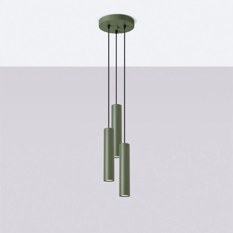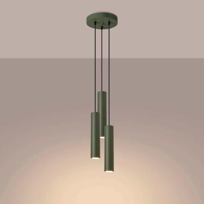Lampa wisząca LAGOS 3P zielona oliwka Sollux SL.1487