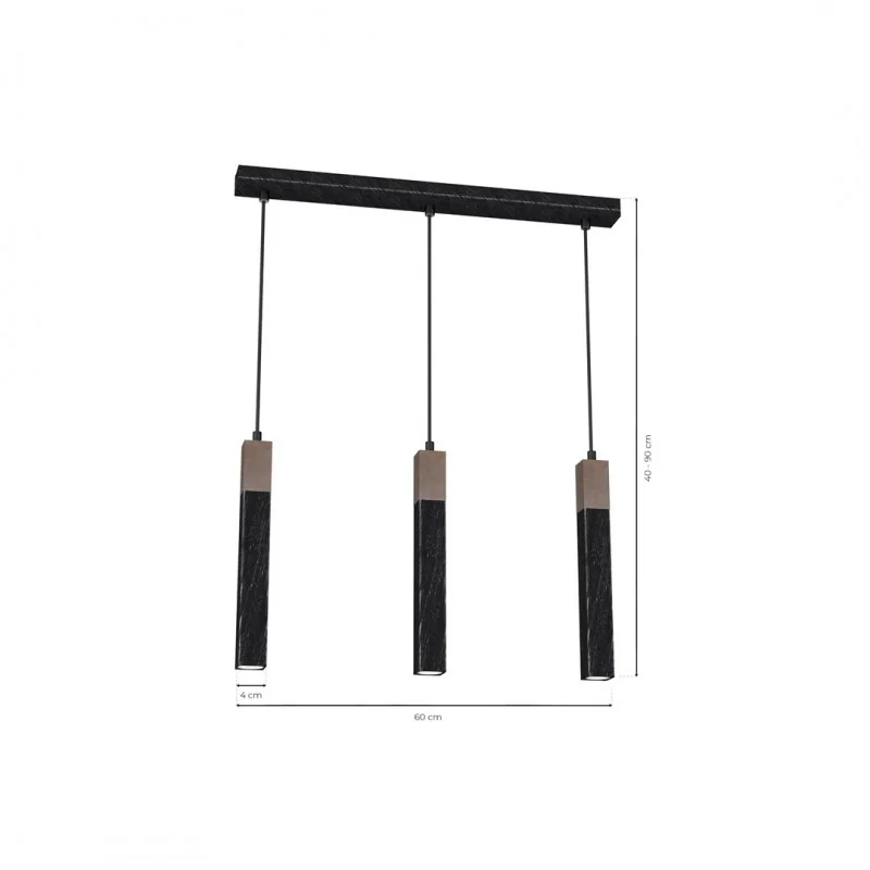 Potrójne oświetlenie wiszące z drewnianymi elementami