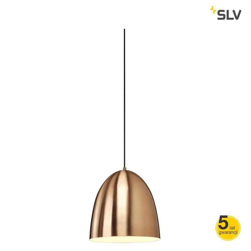 Wisząca lampa sufitowa z miedzianym kloszem.