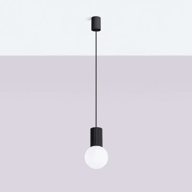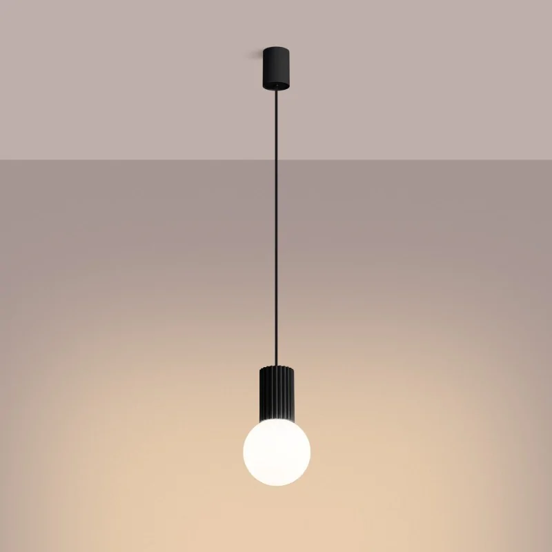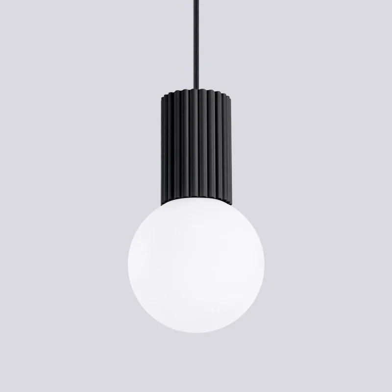 Lampa wisząca mleczna kula z czarną podstawą HALO 1 czarna Sollux SL.1714