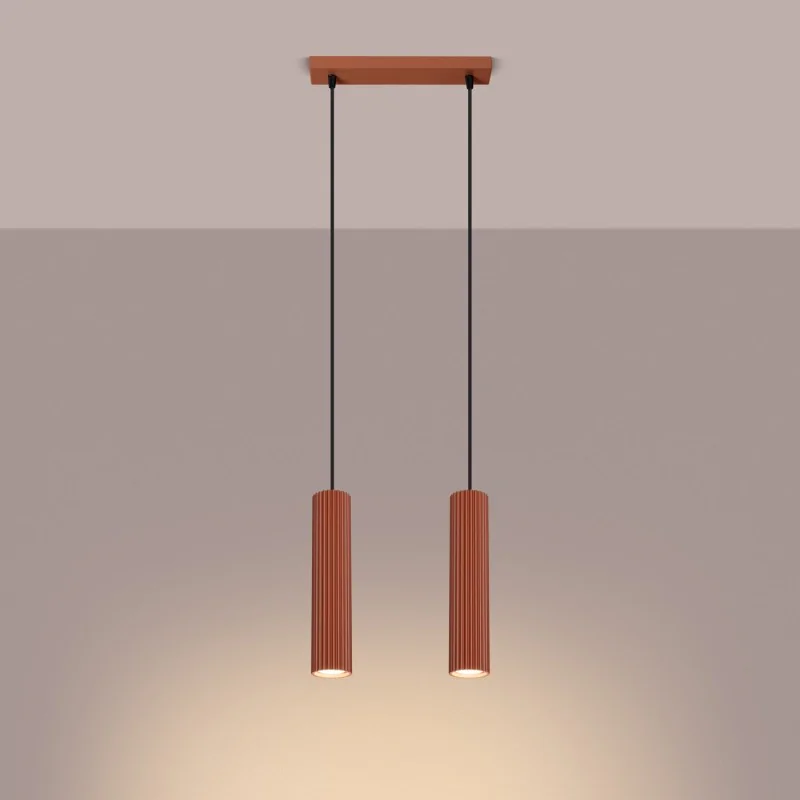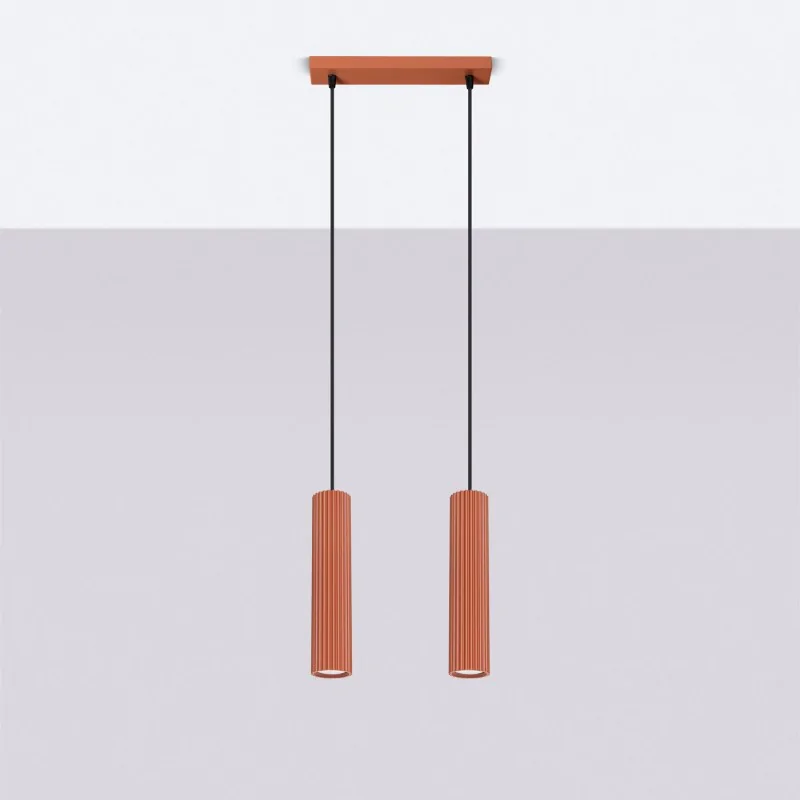Lampa wisząca 2 cienkie tuby PASTELO 2 ochra czerwona Sollux SL.1525