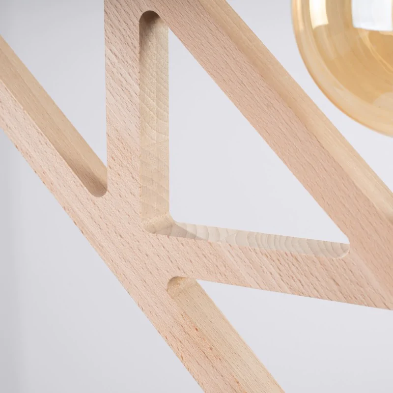 Rama lampy wykonana jest z precyzyjnie frezowanego drewna bukowego, co zapewnia nie tylko trwałość, ale i unikatowy wygląd – każdy egzemplarz posiada swoją naturalną strukturę i ciepły odcień. Dzięki temu CARO zachwyca nie tylko jako źródło światła, ale też jako obiekt dekoracyjny. To design, który nie przemija i który pięknie dojrzewa z czasem.