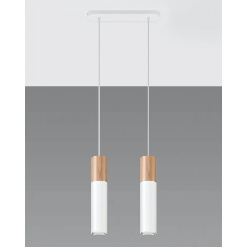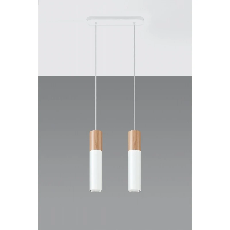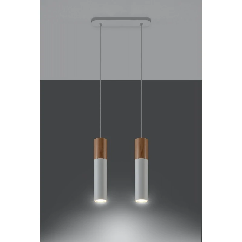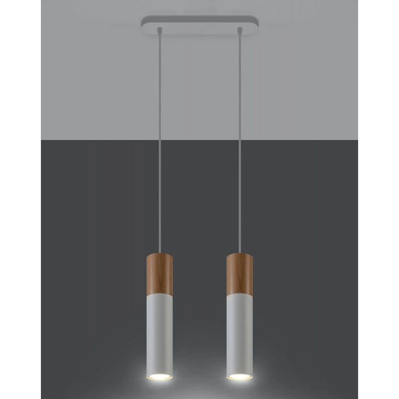 SL.0629 Lampa wisząca nad wyspę podwójna tuby białe z drewnem PABLO 2 GU10 SOLLUX